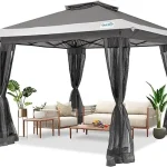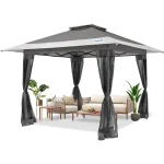 - ONE PERSON ONE PUSH ONE MINUTE: This 13’x13’gazebo canooy features a central lock structure and an integrated folding frame, allowing one person to easily set it up with one push, and to take it down just as easily with a simple twist and pull, making it incredibly convenient within one minute.