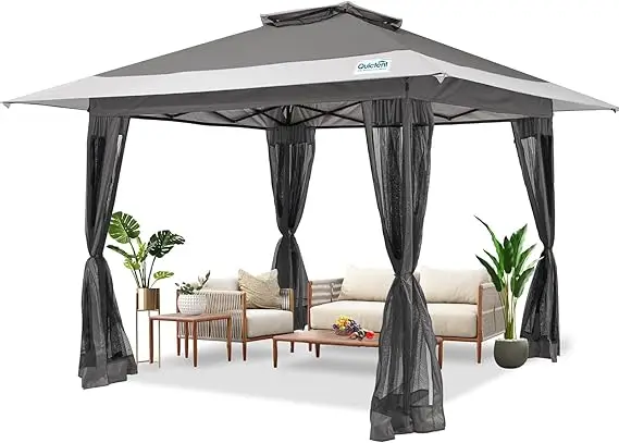 - COMPACT&PORTABLE: The 13 x 13 easy up screen tent has a compact size 46.85×8.86×9.45 inches that can fit in the trunk easily.The storage bag is equipped with wheels, making it convenient to move the waterproof canopy tent to any place you want to go. This 13×13 gazebo with netting is perfect for enhancing your backyard, patio, deck, or any outdoor space.