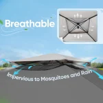 - SEAMLESS MOSQUITO NETTING: The net of this 13×13 pop up canopy tent is attached to the top with a full-length velcro strip, creating an enclosed screen house to provide mosquito protetion.There’s also no gaps between the sidewalls,as the nets of this screened canopy tent are connected with zippers.